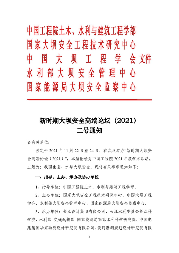 新时期大坝安全高端论坛(2021)二号通知