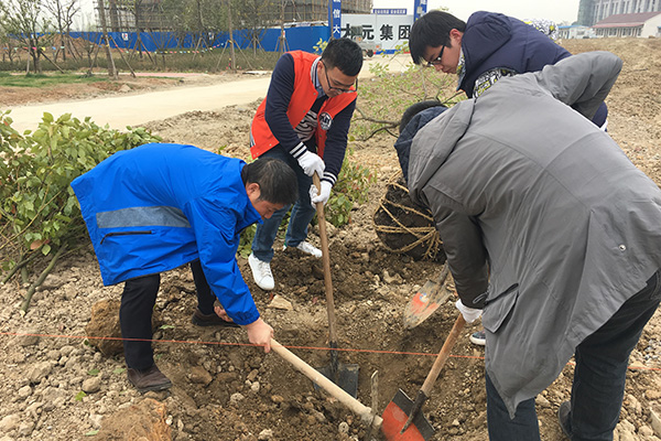 春回大地、芳草吐绿。在第39个植树节来临之际,瑞迪科技总公司、设计院及科兴公司共50余人,在总公司总经理唐云清、常务副总经理金初阳、副总经理徐志峰率领下,于3月10日下午赴我院当涂科学试验及科技开发基地开展义务植树活动。 时隔一年,基地建设已有了翻天覆地的变化,前两年亲手种下的树苗迎风而立,为诺大的基地建筑群带来了一丝绿意盎然的生机。分配好植树任务后,大家迅速就位,互相配合,有的挥锹铲土、有的扶树填土、有的培土浇水,忙得不亦乐乎。有了前两年的植树经验,三十余棵香樟树傲然挺立在了和煦的春风里。 随后,一行人在基地建设管理办公室工作人员的陪同下,参观了安徽瑞迪公司土工席垫研制试验厅,听取了安徽公司相关防汛产品介绍;随后又参观了已建或在建的深水航道试验厅及通航枢纽综合模拟试验厅。 通过此次活动,大家再一次感受到我院科研及科技开发蓬勃发展、基地建设及科研生产欣欣向荣,也深刻意识到美化家园、保护环境的责任义务,并进一步增强了团队的协作精神和凝聚力。