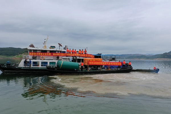 2020年6月下旬,由我院承担的国家重点研发计划项目“黄河干支流骨干枢纽群泥沙动态调控关键技术” 专题在黄河小浪底水库进行了“气动冲沙”减淤现场试验。 黄河泥沙问题举世瞩目,如何提高水库泥沙的出库排沙效率是黄河水利枢纽运行管理中的关键技术难题。本次现场试验采用我院自主研发的“气动冲沙”技术装备,在理论研究、装备设计、水槽试验、物理模型和数学模型研究基础上,首次在小浪底水库库区进行现场试验。 “气动冲沙”现场试验水深为25m~30m,第一次库区现场试验效果良好,试验成果也为气-液(水)-固(沙)三相流耦合理论和模拟研究提供了宝贵的现场实测资料。 |