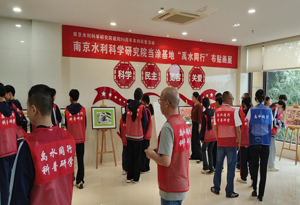此次活动是南京水利科学研究院建院90周年系列科普活动之一,活动以布为媒,以水为韵,不仅是非遗文化与科学普及的深度融合,更是科研院所与校园、传统与未来的一次对话,将大禹治水的智慧与当代水利科技的成就融于一幅幅布贴画和科普研学之间,让科学之理性与艺术之感性交织共鸣。