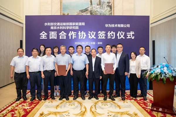 2024年9月27日,我院院长、党委书记戴济群,院副总工关铁生等一行访问华为技术有限公司并签署全面合作协议。华为公共事业副总裁、大禹特战队队长廖仁斌,华为江苏泛政府和记娱乐app官网的解决方案部长张永胜等参加座谈交流和签约仪式。