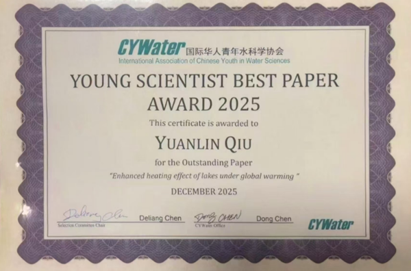 我院青年科技工作者邱元霖博士获国际华人青年水科学协会“青年科学家优秀论文奖”
