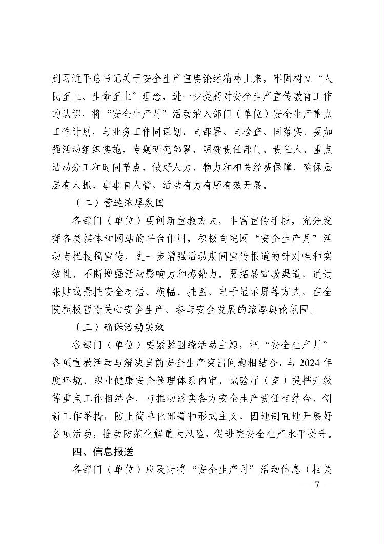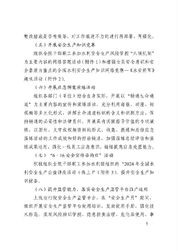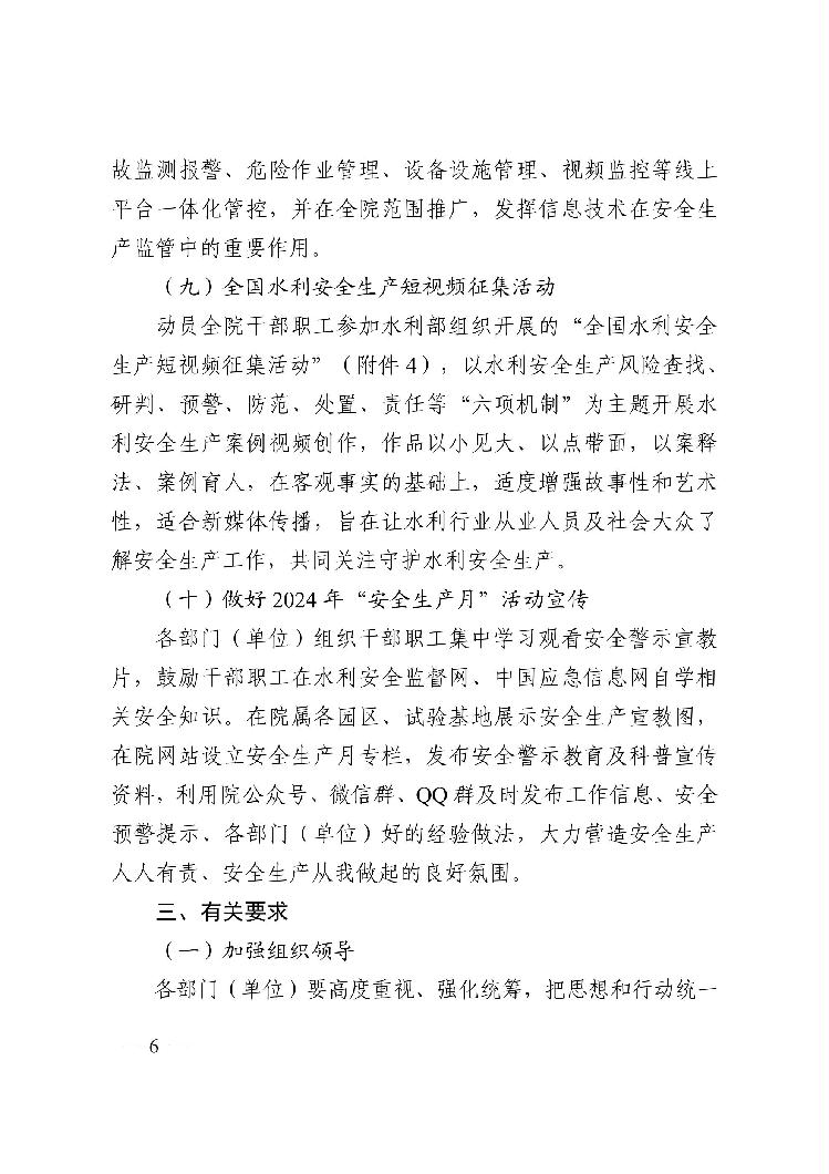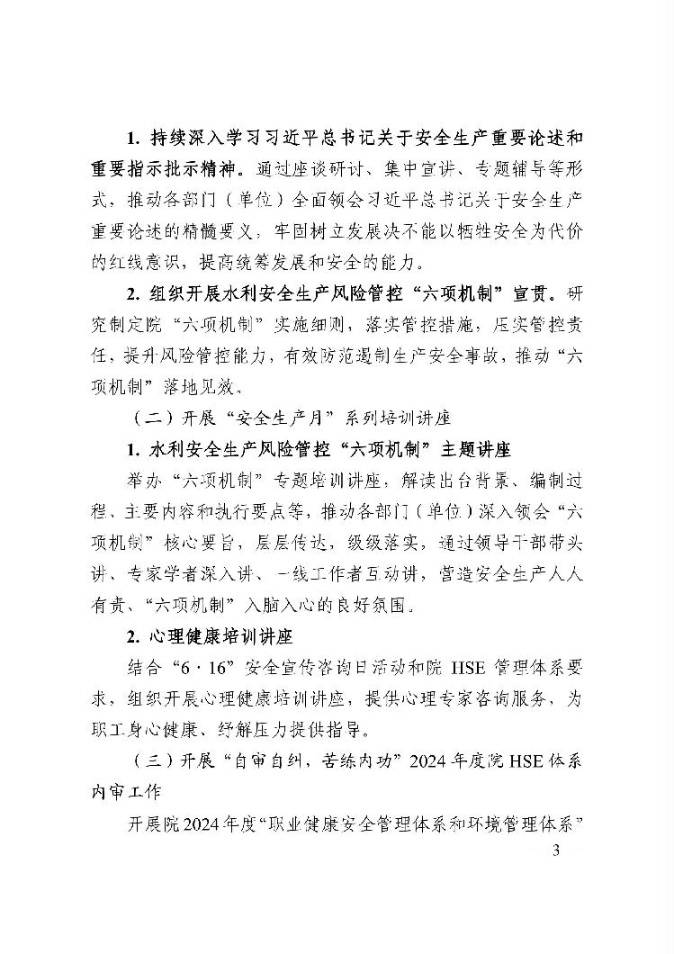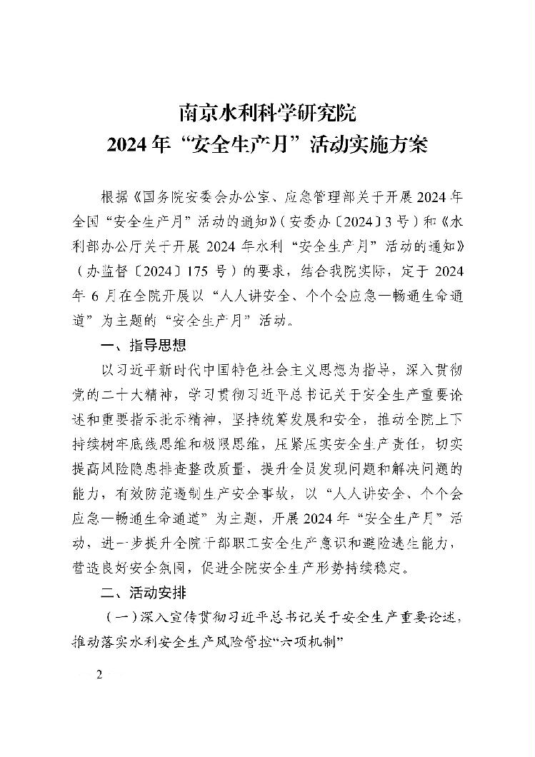 关于印发南京水利科学研究院2024年“安全生产月”活动实施方案的通知