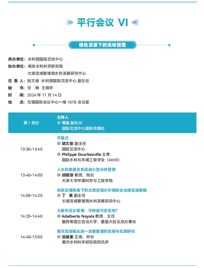 会议抢先看 | 绿色发展下的流域管理会议议程