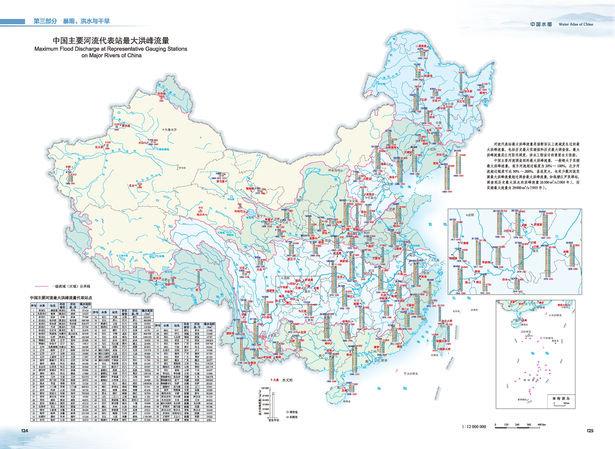 中国主要河流代表站最大洪峰流量